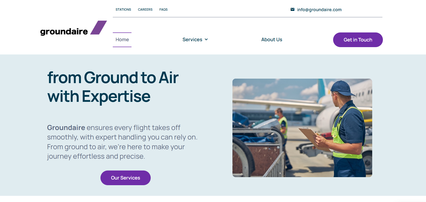 Designed and developed a modern, user-friendly website for Ground GmbH, a startup offering ground handling services. The project focused on showcasing their services—Guide Services, Aviation Security, and Station Management—while creating a strong online presence and intuitive user experience.